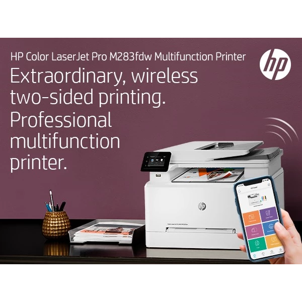 - Máy In HP M283FDW mang trên mình mọi tính năng mà một văn phòng chuyên nghiệp cần như in ấn, copy, scan và fax. Một trợ thủ chuyên nghiệp trong một thiết kế đẹp mắt. Phối màu trắng đen trang nhã khiến cho không gian làm việc trở nên sang trọng hiện đại.